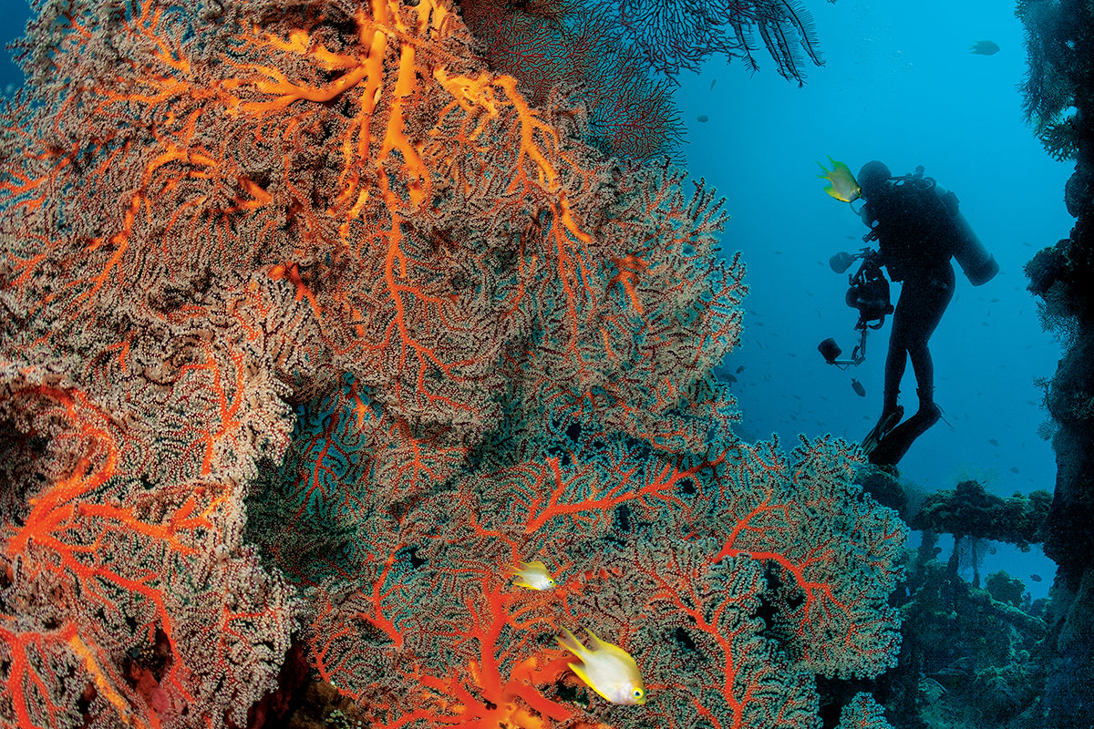 EN 2018 Y 2019, MI ESPOSO Y YO viajamos a 50 lugares en 35 países a lo largo de 14 meses ininterrumpidos y pasamos más de 250 horas bajo el agua para investigar una guía de viaje de buceo para National Geographic.