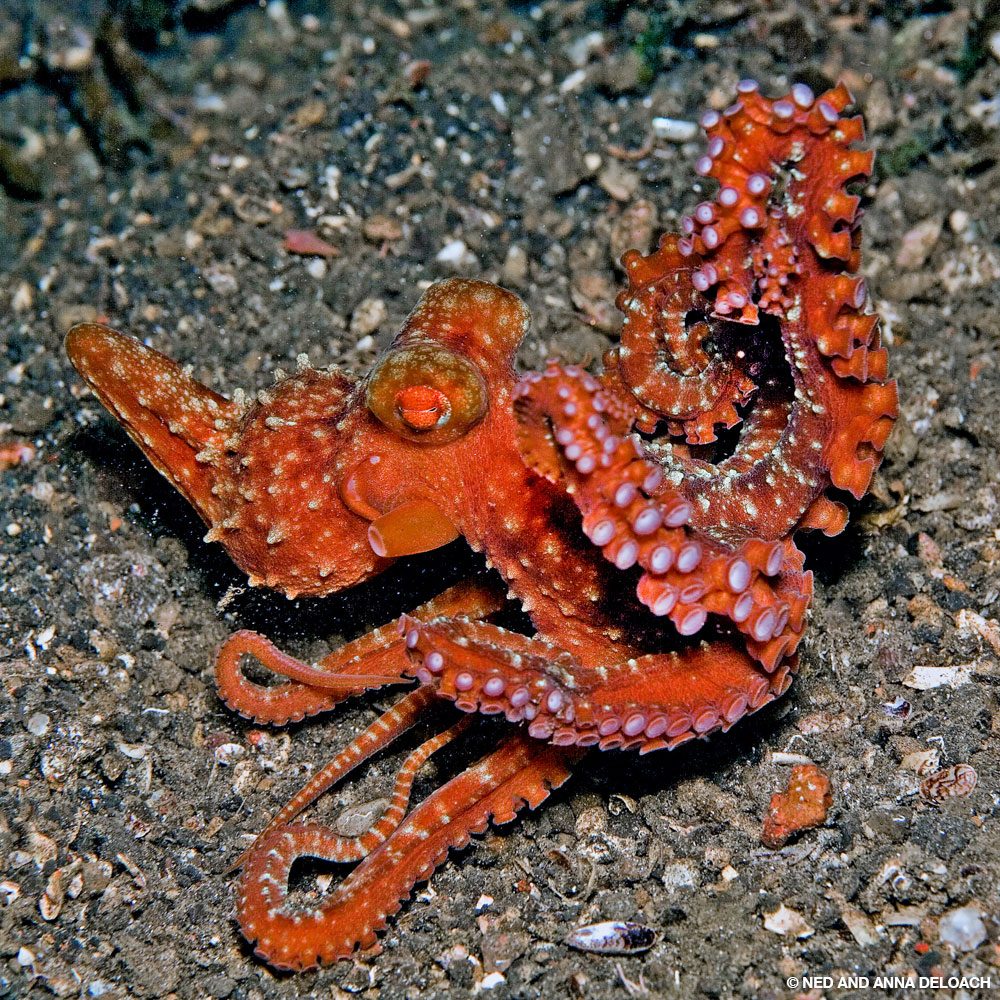 Lembeh está plagado de sus célebres pulpos mimo, wunderpus, de coco y de anillos azules, peces sapo de toda índole, peces pipa fantasma, peces mandarín, miracielos, nudibranquios en abundancia, mantas mobula, caballitos de mar pigmeos, cangrejos portadores y camarones alga. Como siempre, había mucho para ver, pero esta vez concentramos nuestros esfuerzos bajo el agua en fotografiar a algunas criaturas específicas.