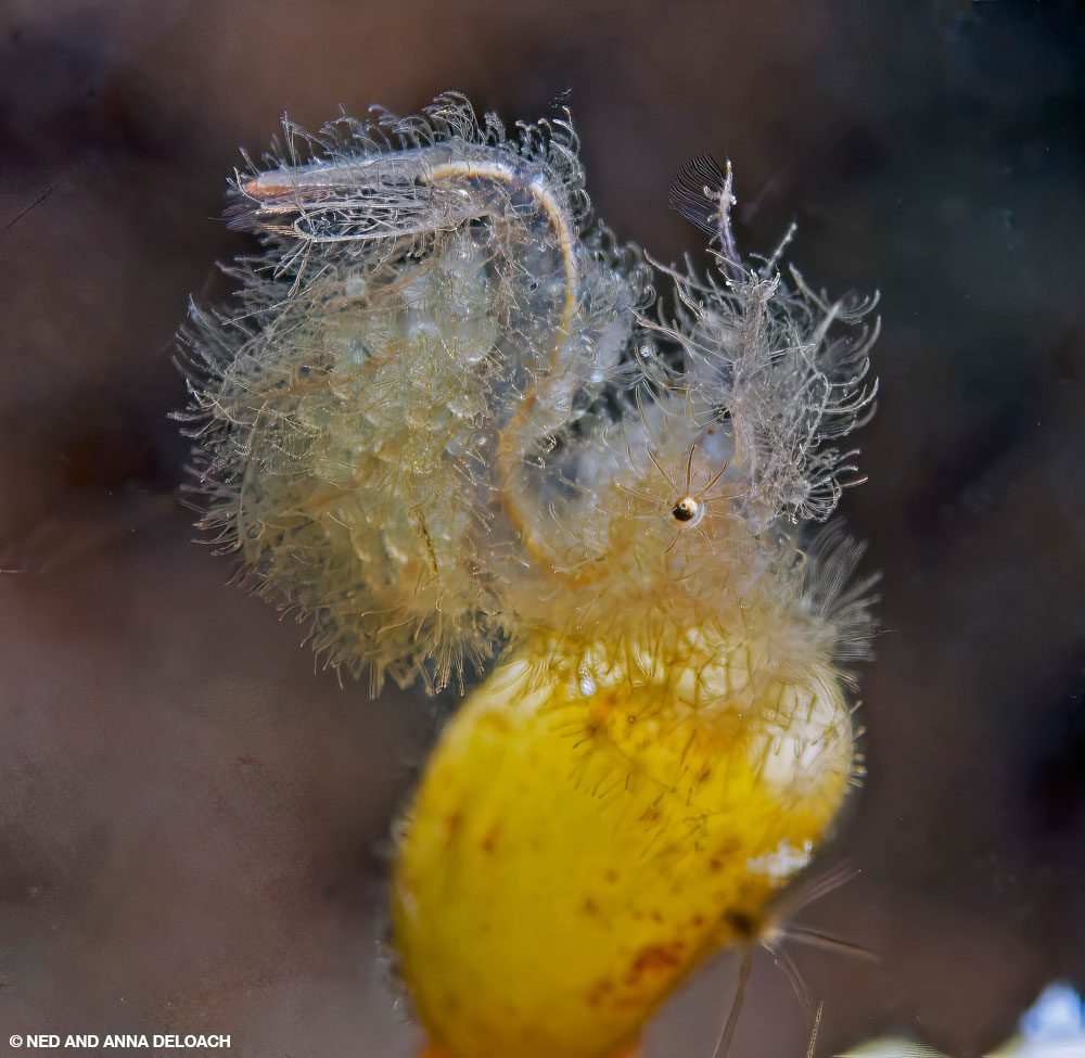 No hay nada garantizado en la naturaleza ni el estrecho; el éxito a menudo depende del tiempo que pasamos bajo el agua. Muchos de los animales que buscamos son difíciles de encontrar, incluso en los mejores momentos. Si bien algunas de las especies más buscadas van y vienen con las estaciones, otras —como los pulpos de anillos azules y peludos, peces pipa fantasma y los pequeños y adorables gobios dorados que ponen sus huevos en botellas— solo pasan temporalmente para reproducirse. Hasta los nudibranquios prefieren las aguas un poco más frescas del verano. Algo que está fuertemente entramado en la estructura caleidoscópica de una de las comunidades de fauna más celebradas de la Tierra son los posibles honores que usted y su guía pueden obtener si llegan a descubrir y fotografiar una especie completamente inesperada, posiblemente sin nombre y desconocida para la ciencia. Sucede cada año.