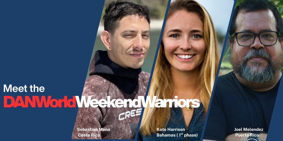 We’re thrilled to introduce our first three Weekend Warriors: Sebastian Mena (Costa Rica), Joel Melendez (Puerto Rico), and Kate Harrison (Bahamas – first phase). These dedicated professionals will act as DAN World’s field representatives, providing in-person visits, delivering materials, gathering feedback, and ensuring you have access to the latest tools and information to grow your business and serve your divers.