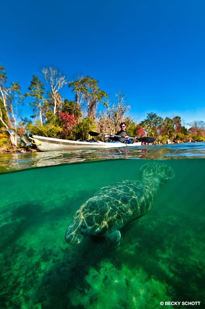 Conditions : The best time to see manatees in Crystal River is from December to March. All of Florida’s springs are accessible year-round. A 5 mm wetsuit or drysuit is essential. I usually spend several days in Crystal River. Conditions and encounters can vary. It’s a great place for wide-angle and nature photography.