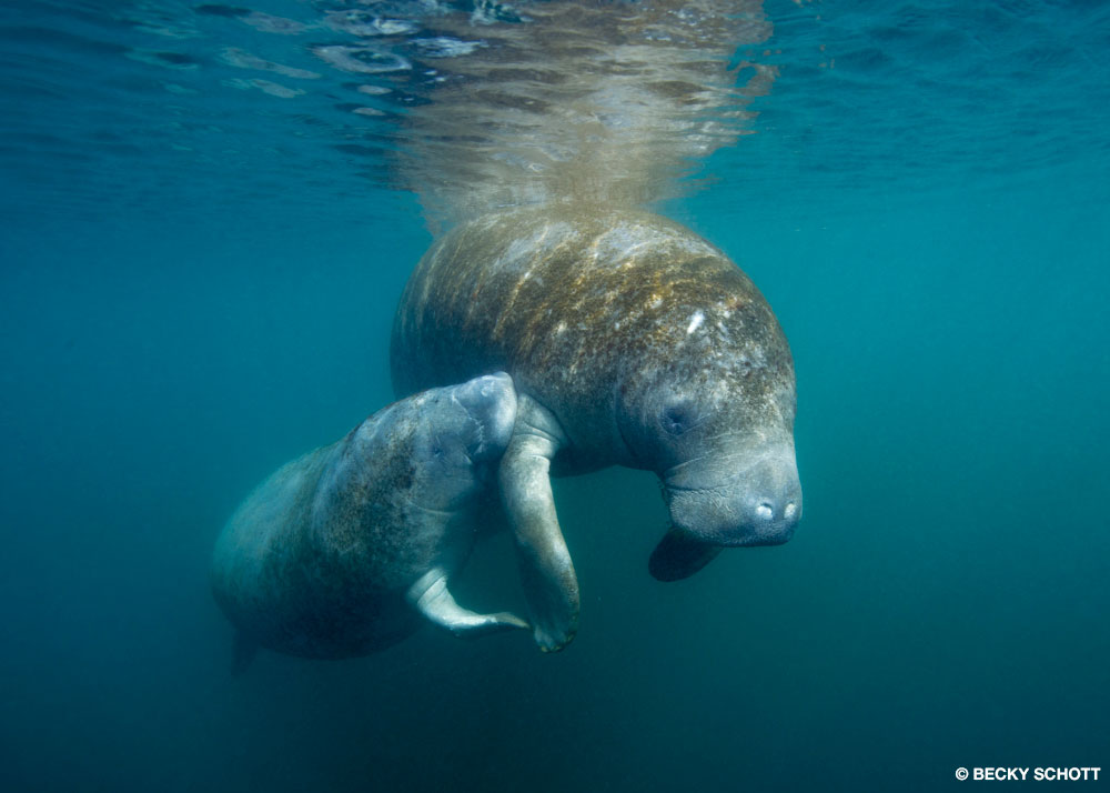 Snorkelers must follow strict guidelines and stay outside of clearly marked manatee refuge areas with no-entry signs. Snorkelers are encouraged to take their time, not make noise, and observe the manatees. You’re not allowed to touch or chase a manatee, or you could be fined. Calmly and quietly floating on the surface is the best way to see these curious sea cows.