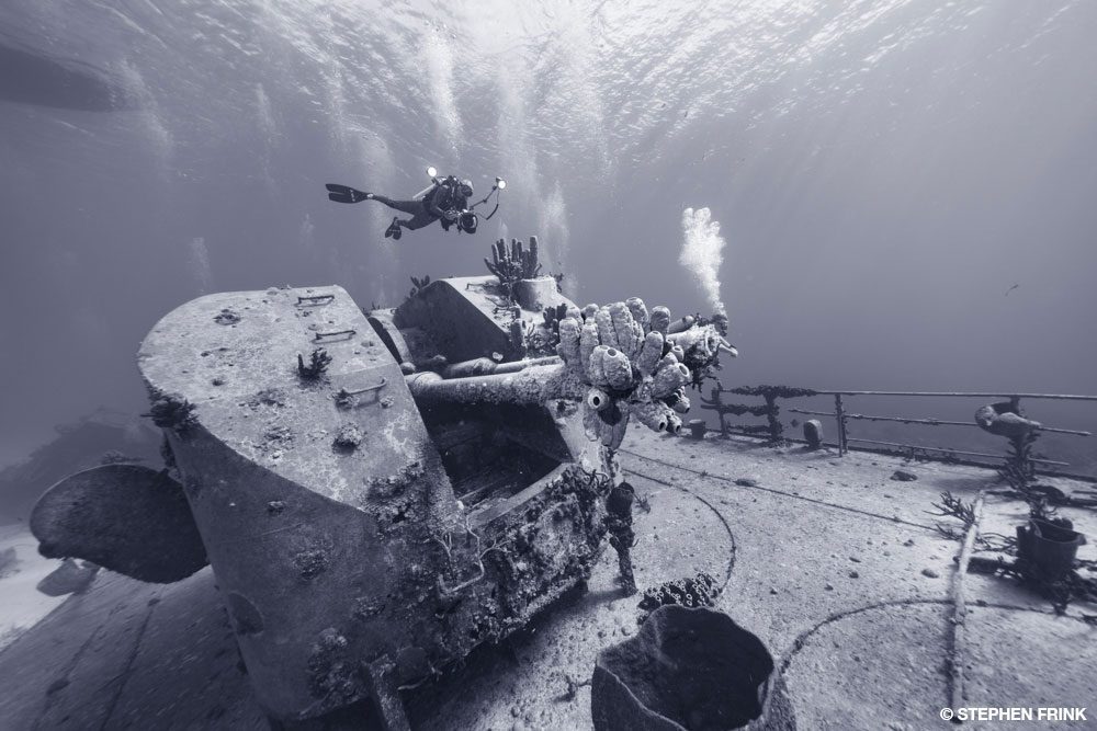 L’ouragan Beryl a arraché certaines éponges et légèrement déplacé la structure, suffisamment pour que le site paraisse différent de ma visite précédente en 2022. Cela reste néanmoins une superbe plongée, et l’un des rares épaves accessibles en plongée loisir où les emplacements de canons — au centre du navire et surtout à la poupe — sont encore bien préservés et extrêmement photogéniques.
