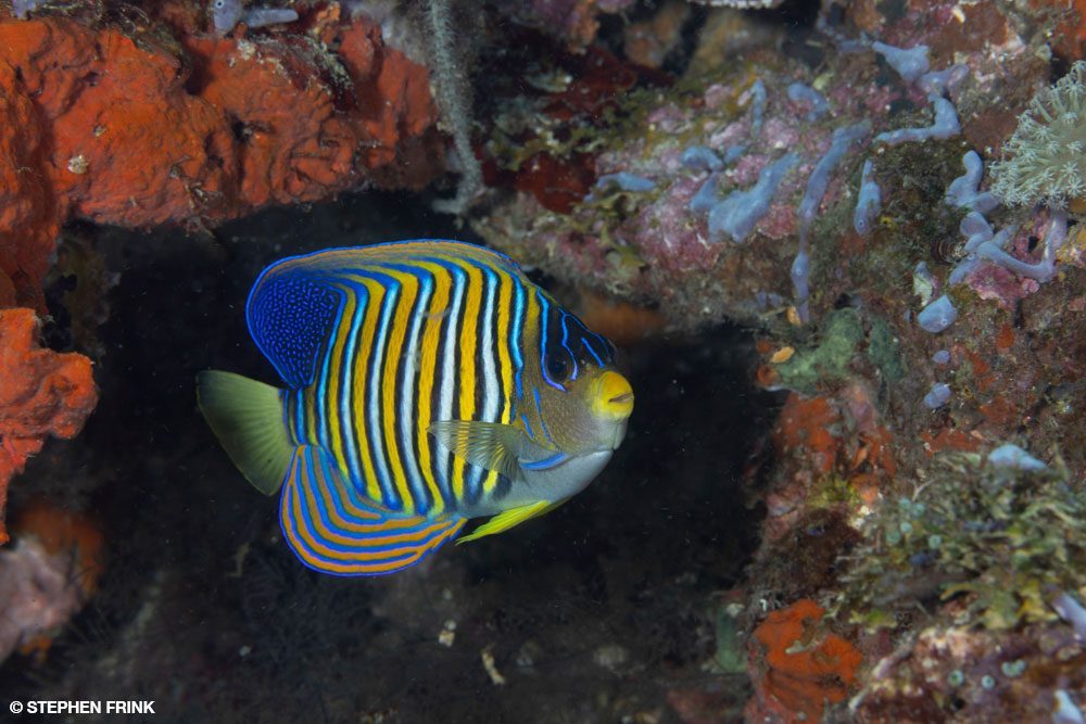 Les plongées quotidiennes organisées depuis les centres de villégiature se concentrent sur une quarantaine de sites nommés dans la baie de Kimbe, tandis que les croisières-plongée s’aventurent plus au large, selon la météo et les saisons. Nous avons programmé notre voyage en octobre afin de plonger dans la baie de Kimbe, ainsi qu’aux îles Witu et aux Fathers Reefs. Ces sites sont généralement accessibles de la mi-septembre à novembre, puis d’avril à juin. Bien que la baie de Kimbe offre amplement de sites pour satisfaire même les plongeurs les plus passionnés, notre circuit combiné de 10 jours nous a permis de profiter d’une meilleure visibilité sur les récifs au large et d’une plus grande diversité de structures récifales.