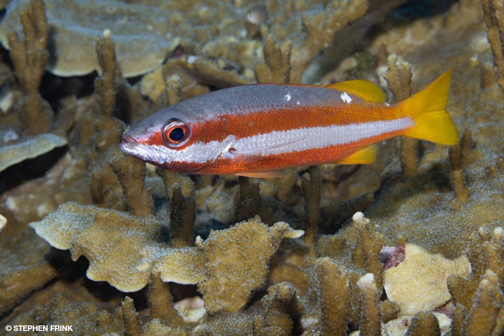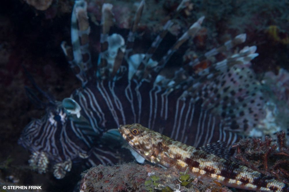 D’autres filtreurs colorés, comme les éponges oreilles d’éléphant orange et les grandes éponges barriques, rivalisent avec d’immenses gorgones, signe qu’il y a parfois du courant ici, même si c’était totalement calme lors de notre passage. Les plongeurs qui avaient apporté un objectif macro 100 mm pour cette première plongée ont eu raison. Le platier sableux sur lequel nous avons réglé notre flottabilité abritait une grande colonie d’anguilles jardinières et des habitants du sable faciles à photographier, comme les gobies, les plies et différentes espèces de dragonets.
