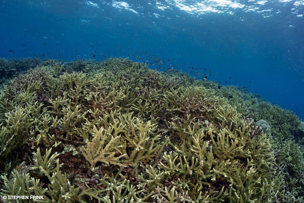 Le récif était splendide, couvert de coraux branchus — principalement différentes espèces d’acropores — juste sous le mouillage. Il n’y a pas si longtemps, j’aurais probablement traversé ces champs de coraux durs d’un seul tenant à la recherche de coraux mous colorés ou de bancs de poissons en plus grande profondeur. Mais l’effondrement récent de tant de récifs à cause du blanchissement m’a obligé à m’arrêter et à admirer ce qu’il en reste, encore si vivant et intact. Ces récifs sont épargnés par la pêche à la dynamite, les cyclones, les attaques d’acanthasters (étoiles de mer couronnes d’épines) ou les multiples problèmes de qualité de l’eau que subissent nos récifs de l’hémisphère occidental. C’est pour des environnements comme celui-ci que l’on voyage.
