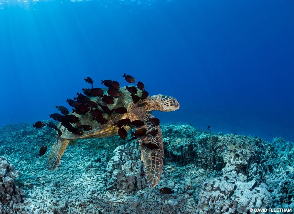 Il semble que la plupart des grands noms de la photo sous-marine aient croisé la route de Fleetham à l’époque des débuts du numérique, alors qu’ils passaient immanquablement par Maui. Neil McDaniel, figure de la plongée à Vancouver, est devenu rédacteur en chef du magazine canadien Plongeur, et Fleetham s’est lancé dans une quête de couvertures pour la publication. Il se souciait peu que ses photos paraissent en pages intérieures, mais il tenait vraiment à décrocher la une. Cette passion ne l’a jamais quitté, et il cumule aujourd’hui plus de 200 couvertures à son actif.