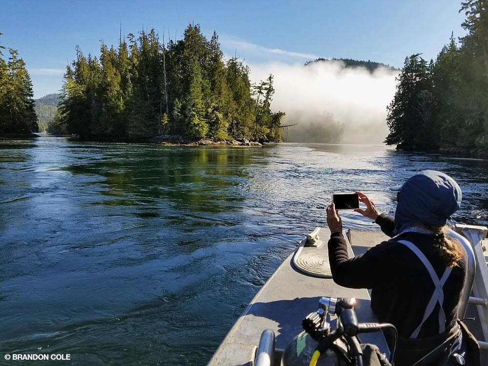 Ce site, comme une douzaine d’autres, regorge d’une beauté éclatante, avec des strates de vie allant du minuscule jusqu’aux mammifères marins — et pourtant, aucun autre bateau de plongée à l’horizon. Port McNeill est la porte d’entrée d’un « scubaverse » qui reste, de façon incroyable, presque inconnu en dehors du cercle local des plongeurs.