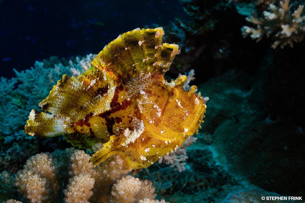 That evening we did a night dive from the shore at the house reef jetty. We encountered many critters, including scorpionfish, frogfish, octopuses, nudibranchs, and two massive stonefish. The stonefish were the biggest I’ve ever seen and a good reminder not to walk barefoot in the shallows.