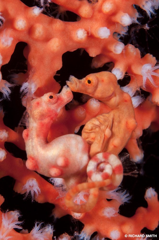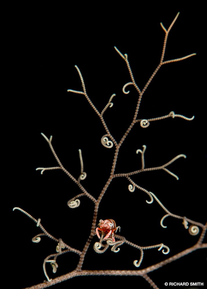 The Denise’s pygmy seahorse was his singular focus for that project. He spent months “watching and recording the antics of these mysterious and diminutive fish.” His observations of their social and reproductive behaviors were the first recorded examples of what he said has “presumably been happening for millennia. We just didn’t know how to look.” Searching for pygmy seahorses and other reef dwellers, describing them for science, and recording them at the highest level of photographic art is what Smith does so very well.