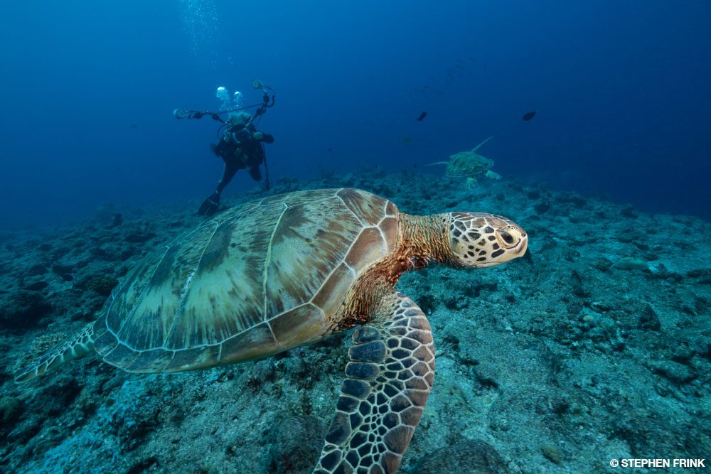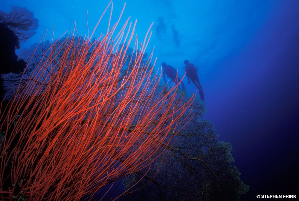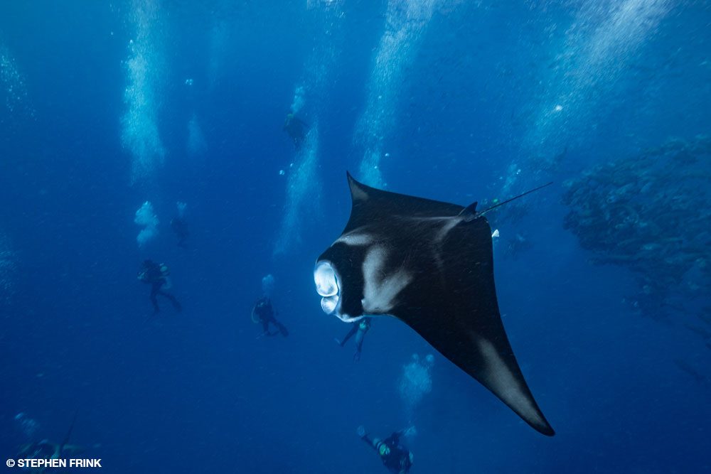 German Channel is known for the multiple cleaning stations that attract manta rays, and plankton floating in the current elicits feeding behaviors. © STEPHEN FRINK