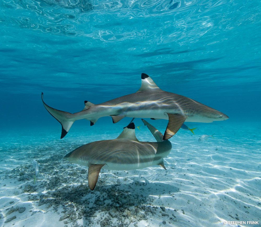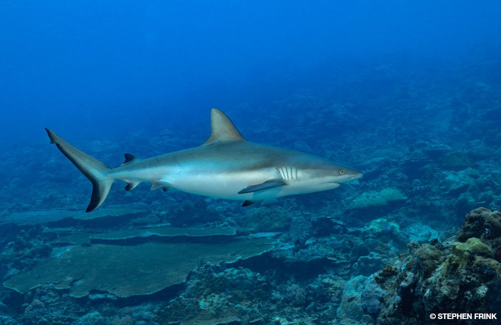 The intense current has scarified the top of the reef, so the procedure is more ecologically benign than it sounds. Hooking in lets divers hover in place without exaggerated motion that might scare away the sharks. Skilled divers and the right current can allow proximity to gray reef sharks, a highlight of the dive.
