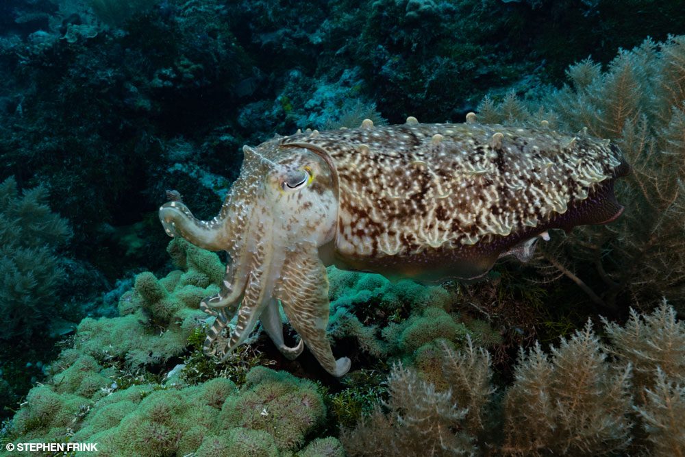 Arne Veimo encounters a cuttlefish along the drop-off at Dexter’s Wall.