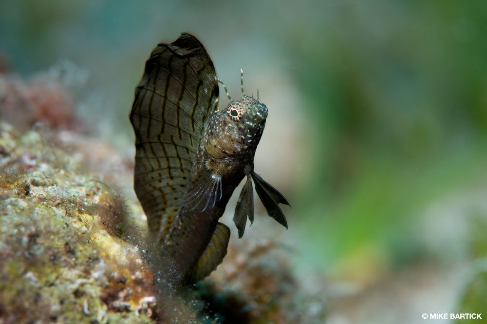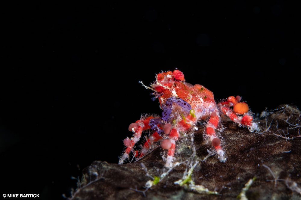 After exploring the reefs and wrecks each morning, we reserved the afternoons to hunt for critters. The divemasters were enthusiastic about critter hunting, and minutes after dropping down to a sandy patch near one of the reefs, our keen-eyed guide pointed to something in the sand. I saw the rapid, unmistakable undulations of a signal blenny. These alluring, over-caffeinated creatures are easily spooked, so I waited for it to do its dance. Jawfish repeatedly leaped into the water column nearby, and my guide soon signaled me from afar that she had spotted one with eggs.