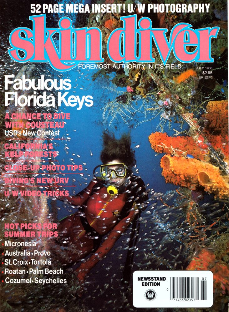 BEFORE THE INTERNET WAS AVAILABLE, people read print magazines to learn about scuba diving — how to do it, what gear to buy, and where to go. For 51 years, from 1951 to 2002, the king of the genre was Skin Diver magazine. The undisputed queen of cover photography for Skin Diver was Geri Murphy.