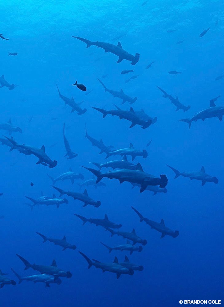 Sandra Bessudo, a shark researcher and the founder and director of the Malpelo Foundation, says the island is a strategic location and an important stopover for migratory fauna, including sharks, mantas, and pelagic gamefish. Malpelo is connected ecologically to the distant Galápagos archipelago, Cocos Island, and even the Revillagigedo Islands. The MigraMar network tracks scalloped hammerhead sharks swimming to and from these islands and the shallower waters bordering the Colombia and Panama coasts, where they give birth to their young.