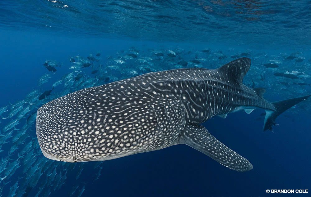 The eighth species we saw was the most superlative cartilaginous creature in terms of tonnage. We had just finished a dive on the island’s southwest flank when the radio squawked. We raced to El Bajo del Ancla, praying to the sea gods that we would not be too late to swim in the slipstream of a giant.