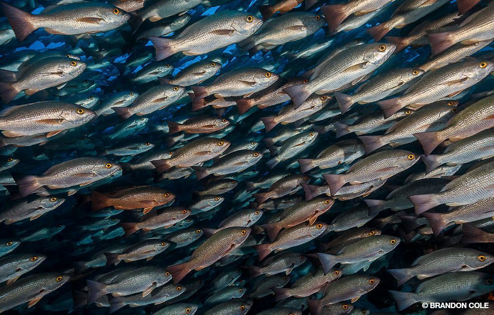 I was stuck in morning traffic on an undersea expressway, with pelican barracudas pointing in one direction and Jordan’s snappers in the other. The schools had merged, enveloping me in the fish jam as they swirled and stopped. Things were backed up pectoral fin to gill cover.