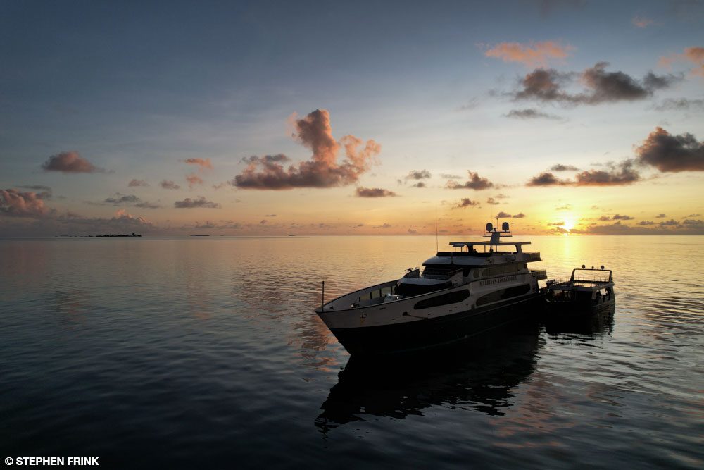 Dhoni diving: Most liveaboards operate synergistically with a dhoni — a 50- to 60-foot yacht with diesel engines and a compressor on board (usually for air and nitrox). Sleeping and dining happen on the mothership, but diving is from the dhoni. This isolates the fill station noise to the dhoni, which also has a stable platform with a sturdy ladder for getting back onto the boat.